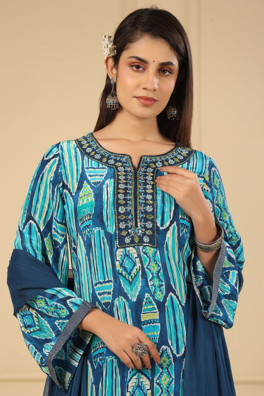 Peacock Blue Floral Suit Set