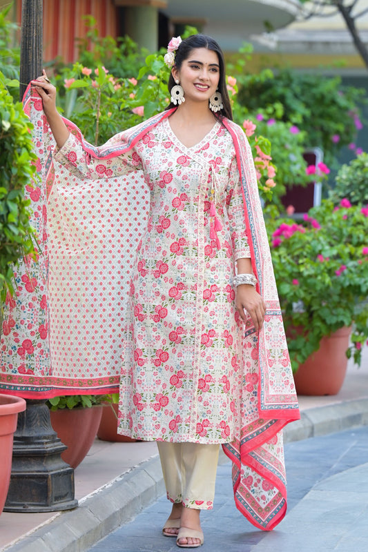 Ivory Pink Angrakha Suit Set